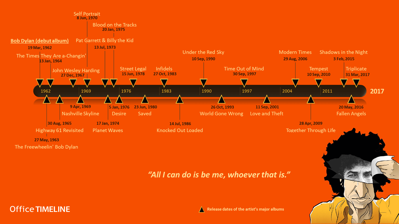 Download the Bob Dylan Albums Timeline for PowerPoint here.