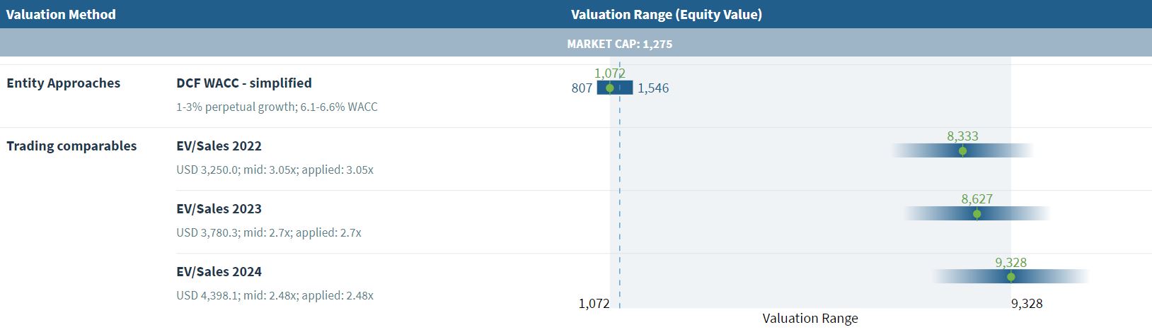 The Trading Comparables analysis resulted in a valuation range of $8 billion to $9 billion by applying the observed EV/Sales multiple of WeWork’s only real listed rival, IWG PLC. Given that IWG is actually profitable, it is no surprise that it is trading at substantially higher multiples than WeWork.