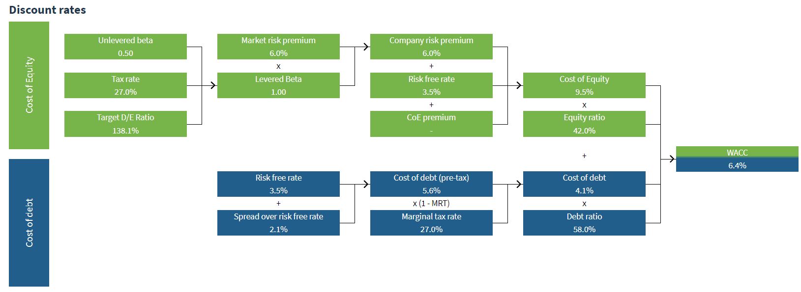 We analyzed WeWork by using the Discounted Cash Flow method, specifically our DCF WACC approach, as well as a Trading Comparables analysis. The Discounted Cash Flow analysis produced a value of $1 billion using a WACC of 6.4%.