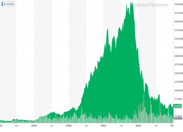 After a breathtaking performance for one and a half years starting in 2020, the company suffered a dismal few months. As market sentiment changed globally during 2022, Sea Ltd. was heavily penalized on the stock market for failing to achieve profitability while sales growth declined. The stock plunged by 86% from $360 per share to the current $50 per share.