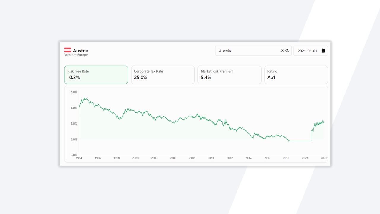 What? We’ve added a ‘date picker’ across key resources sections, allowing you to examine risk-free rates, corporate tax rates, market risk premium, and country ratings across any historic date you select.