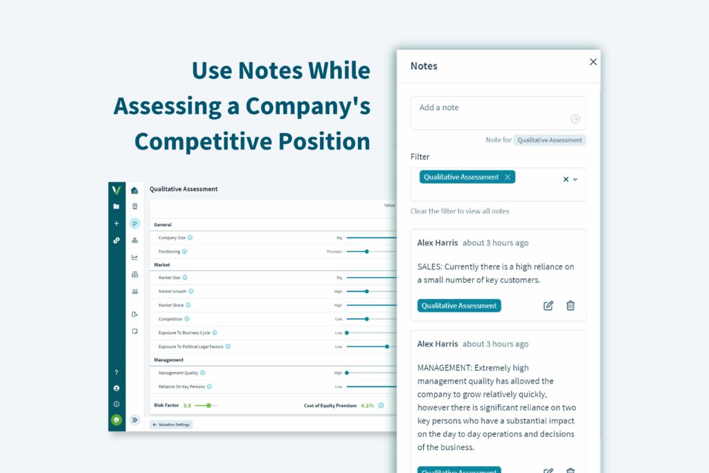 The feature allows users to document the rationale behind specific decisions and assumptions made in the valuation. This documentation helps justify inputs to third parties, such as clients, courts, and potential buyers.
