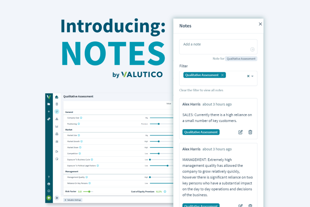 - Valutico launches a new „Notes“ feature to document decisions and assumptions in valuations.