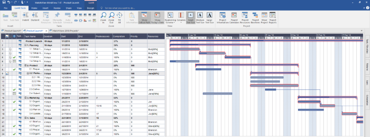 - Allows the gradual and easy creation of Gantt charts in a few steps: in the mind map view, you add schedule information that will be automatically turned into an overall sketch of your project plan; to refine and customize the plan, you switch to the built-in Gantt view where you can allocate resources and manage scope changes;