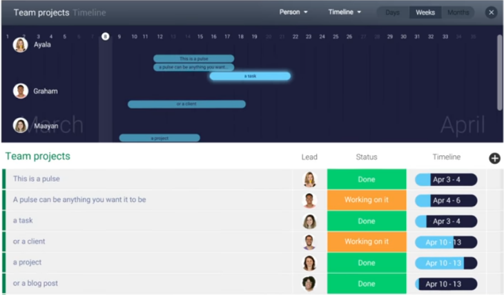 - Lets you see overviews of your project timeline, upcoming deadlines and progress of different tasks;