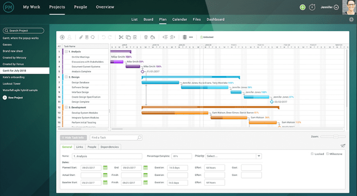Used by global brands like Adobe, The World Bank, HBO and Tesla, it is an enterprise-class web-based project management tool that is suitable for managing dynamic projects with clear Gantt charts.